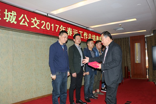 會上,副總經(jīng)理胡忠同志對2017年春運工作作了全面的總結報告。報告指出,2017年我司春運工作在上級部門的堅強領導下,嚴格按照上級各部門關于春運工作的安排,科學布署,精心組織,強化監(jiān)管,春運40天,共發(fā)班27732趟,完成客運量97萬人次,安全生產(chǎn)形勢總體平穩(wěn),服務質量明顯提升,涌現(xiàn)出一批先進個人,圓滿地完成春運各項任務,得到了上級的肯定和群眾的好評。