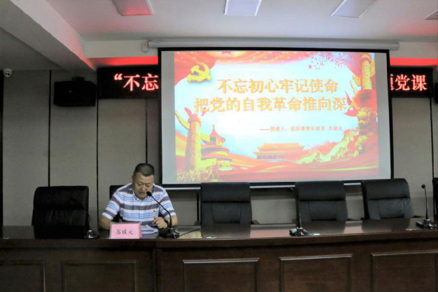 大會(huì)在莊嚴(yán)的國歌聲中拉開序幕。隨后,由支部書記舒渝同志、宣傳委員胡忠同志、紀(jì)檢委員張衛(wèi)同志、組織兼青年委員蘇成元同志分別以《“不忘初心、牢記使命”主題教育》、《我是黨員我奉獻(xiàn)》、《以案為鑒,警鐘長鳴》、《把黨的自我革命推向深入》為題,為參會(huì)人員上了一堂內(nèi)容豐富、主題鮮明的黨課。