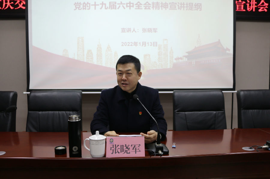 張曉軍從“深刻認(rèn)識(shí)總結(jié)黨的百年奮斗重大成就和歷史經(jīng)驗(yàn)的重大意義”、“深刻認(rèn)識(shí)黨的百年奮斗的初心使命和重大成就”、“深刻認(rèn)識(shí)中國特色社會(huì)主義新時(shí)代的歷史性成就和歷史性變革”、“深刻認(rèn)識(shí)黨的百年奮斗的歷史意義和歷史經(jīng)驗(yàn)”、“深刻認(rèn)識(shí)以史為鑒、開創(chuàng)未來的重要要求”、“從黨的百年奮斗歷程中汲取智慧和力量”六個(gè)方面,對(duì)全會(huì)精神進(jìn)行系統(tǒng)宣講和深入闡釋。